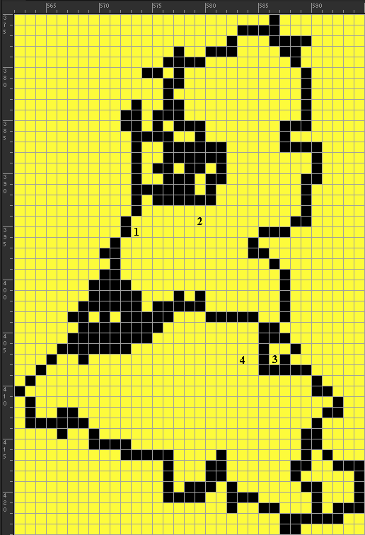 De kleur van de pixel boven die van de originele pixel uit te lezen. Bij succes geeft dit code: * (y+1)